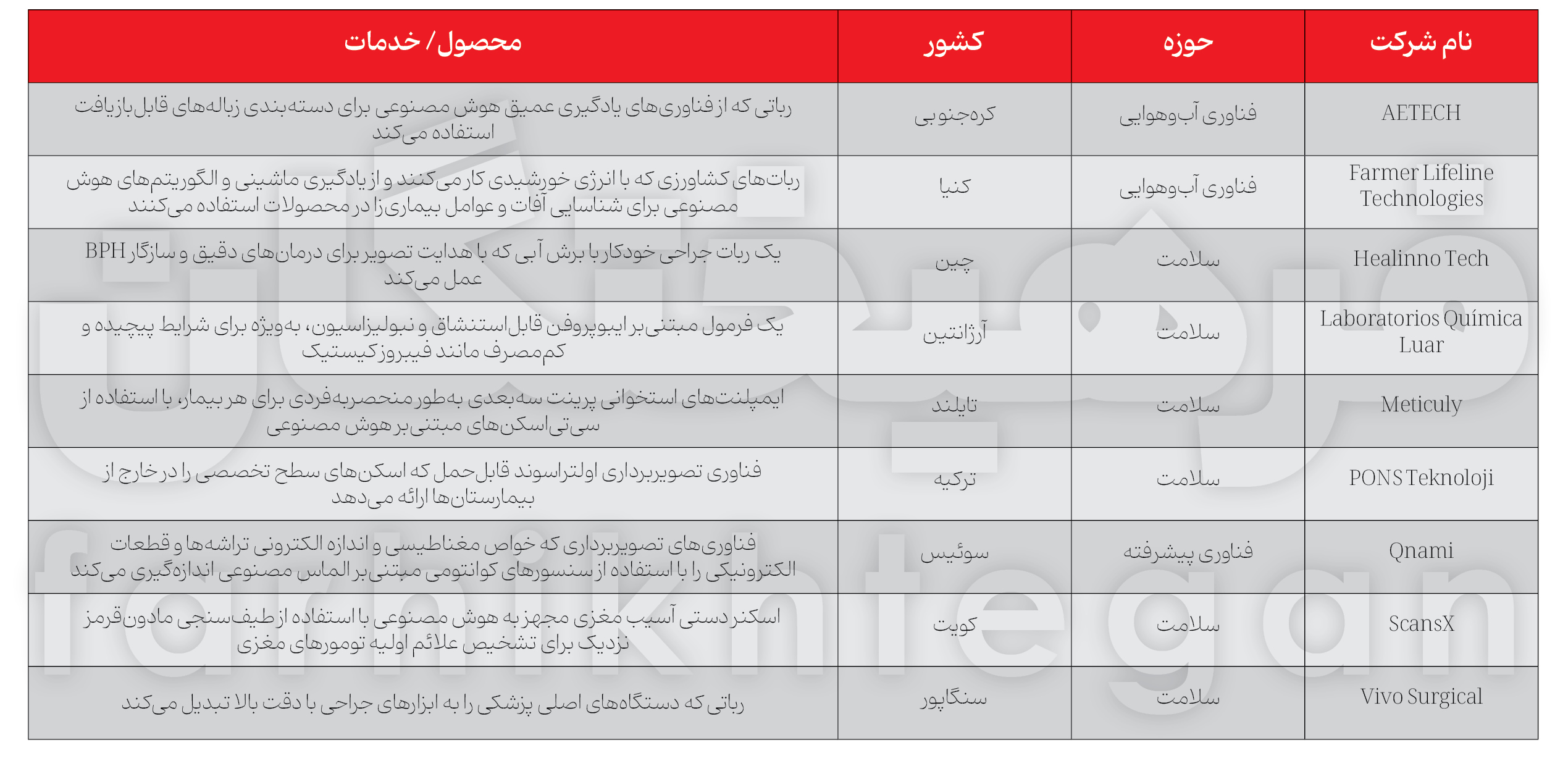 9 شرکت کوچک، متوسط و استارتاپی از سراسر جهان با محصولات مختلفی چون ایمپلنتهای استخوانی پرینت سهبعدی، رباتهای دستهبندی زباله و اسکنرهای آسیب مغزی مجهز به هوش مصنوعی در جایزه جهانی 2024 WIPO حضور یافتند که در ادامه به اختصار به عملکرد و محصول آنها پرداختهایم.