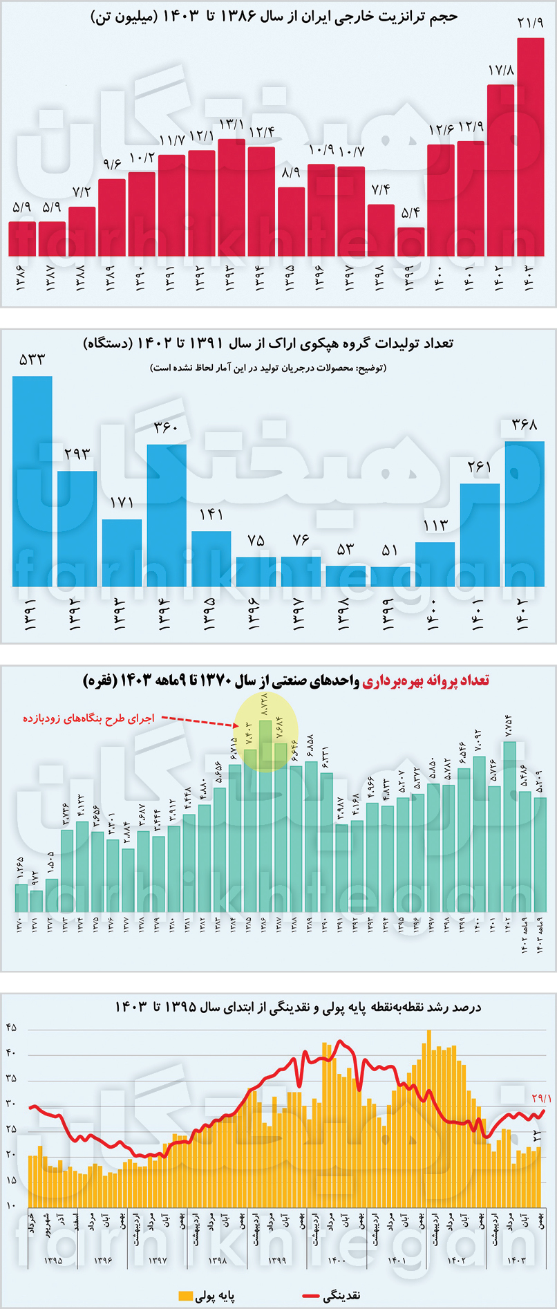 سیاستهای پولی و مالی ابزارهایی برای کنترل تقاضا و آثار شوکهای داخلی و بیرونی بر سایر متغیرهای اقتصادیاند. سیاست پولی یک روند سیستماتیک یا یک استراتژی است که بانک مرکزی از طریق آن عرضه و گردش پول در اقتصاد را بهگونهای تنظیم میکند که تورم، تولید و تقاضای نیروی کار را کنترل کند. نقدینگی بهعنوان کلیدیترین متغیر پولی نقش مؤثری بر شکلدهی سایر متغیرهای کلان اقتصادی نظیر تورم و رشد اقتصادی دارد. رشد این متغیر از یکسو با سیالیت خود، امکان برهمزدن تعادل بازارهای مالی همچون ارز، طلا و سایر داراییها را دارد و از سوی دیگر بهعنوان یکی از نیازهای اصلی بنگاههای اقتصادی بهمثابه روغنی برای گردش چرخ اقتصادی واحدهای تولید محسوب میشود و کمبود آن منجر به رکود و مشکلات گوناگونی از جمله ناتوانی واحدهای تولیدی در ایفای بهموقع تعهدات آنها خواهد شد. پس از روند نگرانکننده رشد نقدینگی در سالهای پایانی دولت دوازدهم، در دولت سیزدهم با اصلاح ابزار سیاستی کنترل مقداری رشد ترازنامه بانکها، نرخ رشد نقدینگی هدفگذاریشده برای سالهای 1401 ،1402 و 1403 به ترتیب، 30 و 25 درصد اعلام شد که رشد نقدینگی محققشده به ترتیب 31.1 درصد، 24.3 درصد و 29.1 درصد در اسفند ماه 1401، 1402 و اسفندماه 1403 بوده است. این مقدار در آخرین آمارها برای پایه پولی نیز به 22 درصد رسیده است، اعداد که برای نقدینگی و پایه پولی در مرداد و شهریور 1400 و دقیقاً زمان تحویل دولت به شهید رئیسی حول و حوش 40 درصد بوده است. این اعداد تا زمان شهادت رئیس دولت سیزدهم در انتهای اردیبهشت 1403 برای نقدینگی 25.6 و برای پایه پولی 21.1 درصد بوده است. بررسی دادهها نشان میدهد به رغم اتفاقات امنیتی سال 1403، هنوز هم رشد نقدینگی و پایه پولی پایینترین مقدار از دیماه 1398 تاکنون بوده است.