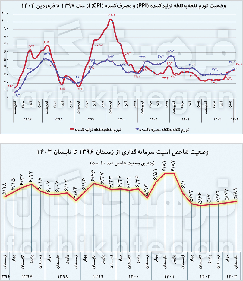 بر اساس دادههایی که بانک مرکزی اخیراً ارائه داده، تورم نقطهبهنقطه تولیدکننده در فروردین 1404 به 37.9 درصد رسیده و همچنین طبق گزارش مرکز آمار ایران، تورم نقطهبهنقطه مصرفکننده نیز در همین ماه 38.9 درصد بوده است. این اعداد گرچه در ماههای اخیر روند صعودی گرفته، اما تورم تولیدکننده از ارتفاع 103 درصدی در ابتدای سال 1400 و تورم مصرفکننده نیز از ارتفاع 55 درصدی در اردیبهشت 1402 به ارقام مذکور رسیده است.