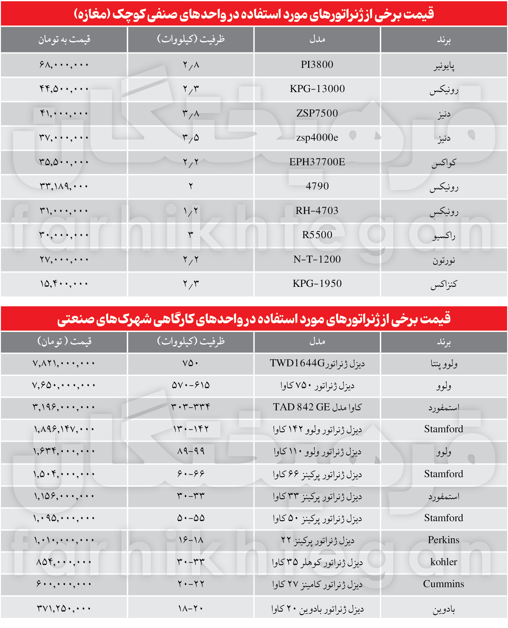 هزینه موتوربرق: از 30 میلیون تا 8 میلیارد تومان