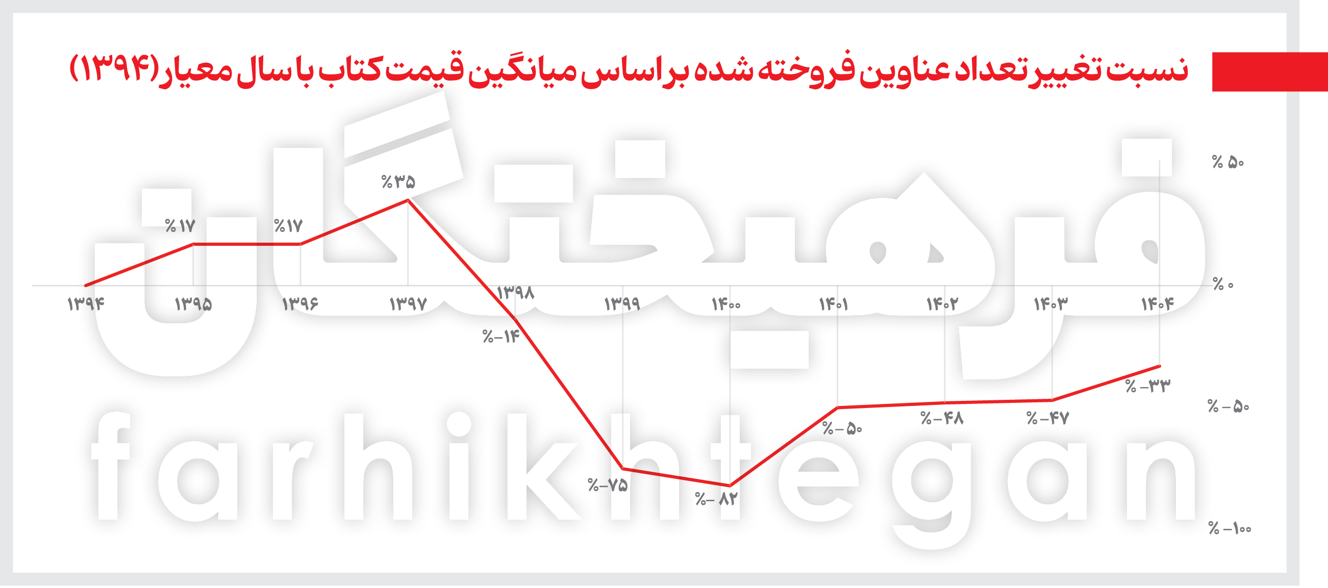 قیمت کتاب از سال 94 تا امسال حدود 15 برابر افزایش پیدا کرده است. این افزایش قیمت کتاب طبیعتا روی بنها اعمال نشده و قطعاً سبد کتاب برای مردم افزایشی پیدا نکرده است. از آخرین سال قبل از کرونا، حدود 4 برابر قیمت کتاب افزایش پیدا کرده. با این حال، از سال 94 تا سال 1404، نمایشگاه کتاب به میزان شدیدی کاهش قیمت پیدا کرده است. در سال 1397 تعداد عناوین فروخته شده در نمایشگاه کتاب در مقایسه با سال 1404، تقریباً نصف شده است.
