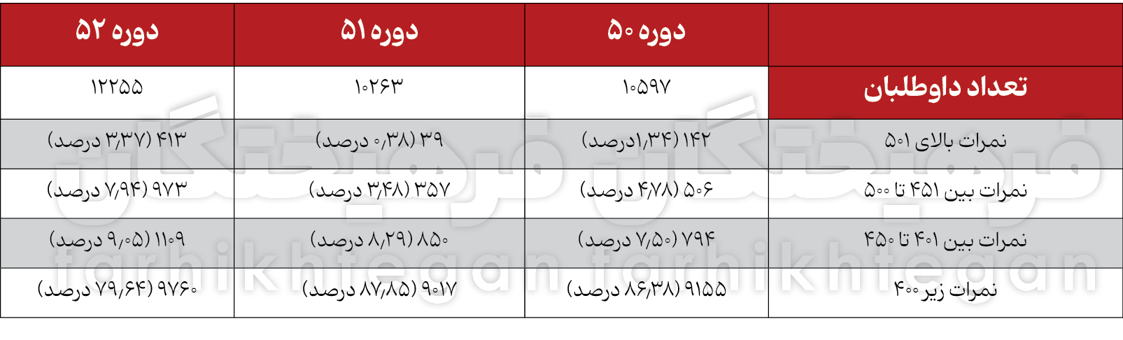 فقط رتبههای برتر میتوانستند نمره بالای 500 کسب کنند