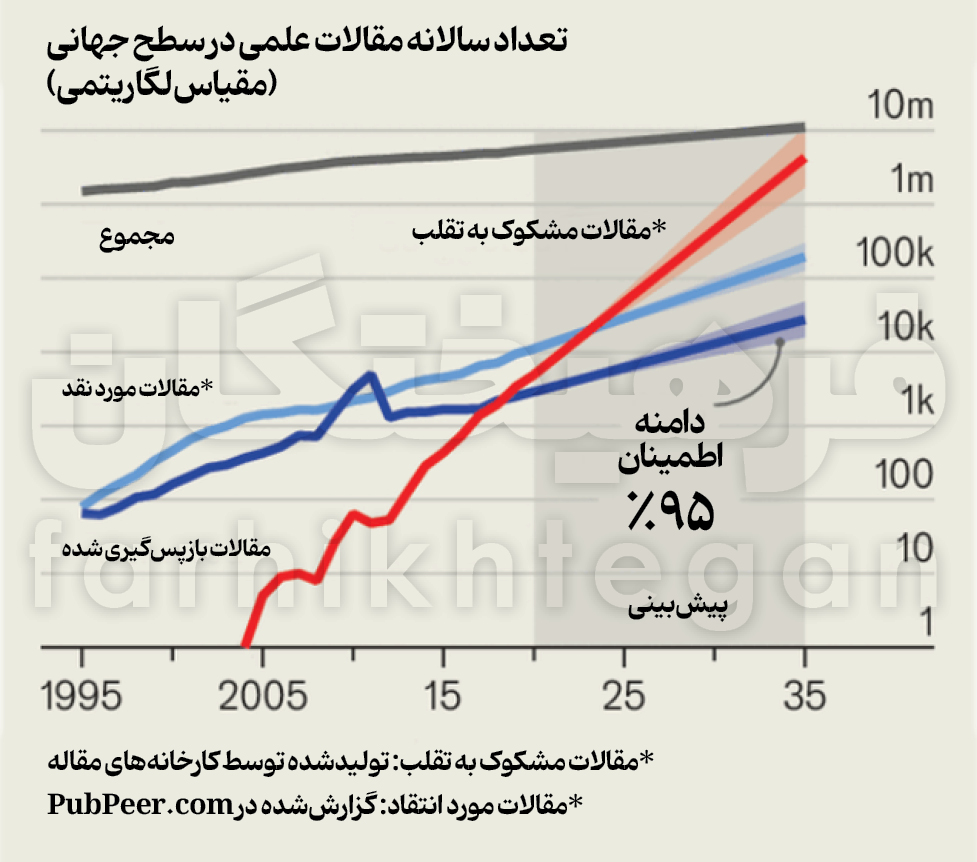 ابوالفضل مظاهری، دبیر گروه دانشگاه: شیب روبهرشد و افزایش تولید و نشر مقالات علمی در پسروی مثبت و جذاب و امیدوارکننده خود، تردیدهای جدی نسبت به کیفیت آنها پدید آورده است. ناشران بینالمللی از یکسو و ناظران دانشگاهی در کشورهای مطرح و بلوکهای اصلی تولید علم جهان تلاش دارند در مقابله با جریان کارخانههای تولید مقاله ایستادگی سفت و سختی به خرج دهند و از حیثیت علم دفاع کنند. بااینحال هنوز نگرانیهای عمیقی نسبت به تداوم این جریان وجود دارد. مجله اکونومیست در جدیدترین شماره خود در مطلبی به پدیده مقالات علمی جعلی پرداخته است. نویسنده اکونومیست معتقد است هدف اصلی «نشریات علمی» ارائه گزارشهایی دقیق و دارای «داوری همتا» از پژوهشهای نوین به مخاطبان علاقهمند بوده اما مقاله منتشر شده ۴ اوت مجله علمی آکادمی ملی علوم آمریکا «PNAS» نشان میدهد این هدف بهشدت زیرسؤال رفته است. نویسندگان این مقاله نتیجه گرفتهاند «تقلب علمی» در ابعاد گسترده رخ میدهد و با سرعتی نگرانکننده درحالرشد است. در واقع اگرچه تعداد مقالات علمی تقریباً هر ۱۵ سال دوبرابر میشود، اما تعداد مقالاتی که مشکوک به تقلبند، از سال ۲۰۱۰ تاکنون هر ۱.۵ سال دوبرابر شدهاند. «لوئیس نونس آمارال»، فیزیکدان دانشگاه نورثوسترن در شیکاگو و نویسنده ارشد این مطالعه گفته که «اگر اقدامی صورت نگیرد، ساختار فعلی نهاد علم نابود خواهد شد.» بررسیهای سالهای اخیر نشان داده تقلب در نشر علمی بهندرت یک حرکت فردی بوده است. در واقع شرکتهایی موسوم به «کارخانه مقاله» این مقالات را تهیه میکنند؛ مقالاتی جعلی، مملو از آزمایشهای ساختگی و دادههای ساختگی که اغلب با کمک «مدلهای هوش مصنوعی» تولید میشوند. این شرکتها، امتیاز نویسندگی این مقالات را به پژوهشگرانی میفروشند که در پی افزایش تعداد مقالاتشان هستند اما تحلیل انجامشده توسط دکتر آمارال و همکارانش حاکی است برخی سردبیران (ادیتورها) آگاهانه چنین مقالاتی را تأیید و منتشر میکنند. آنها در این مقاله استدلال کردهاند گروه کوچکی از ادیتورها مسئول بخش عمدهای از مقالات مشکوک منتشرشده در نشریات خودند.