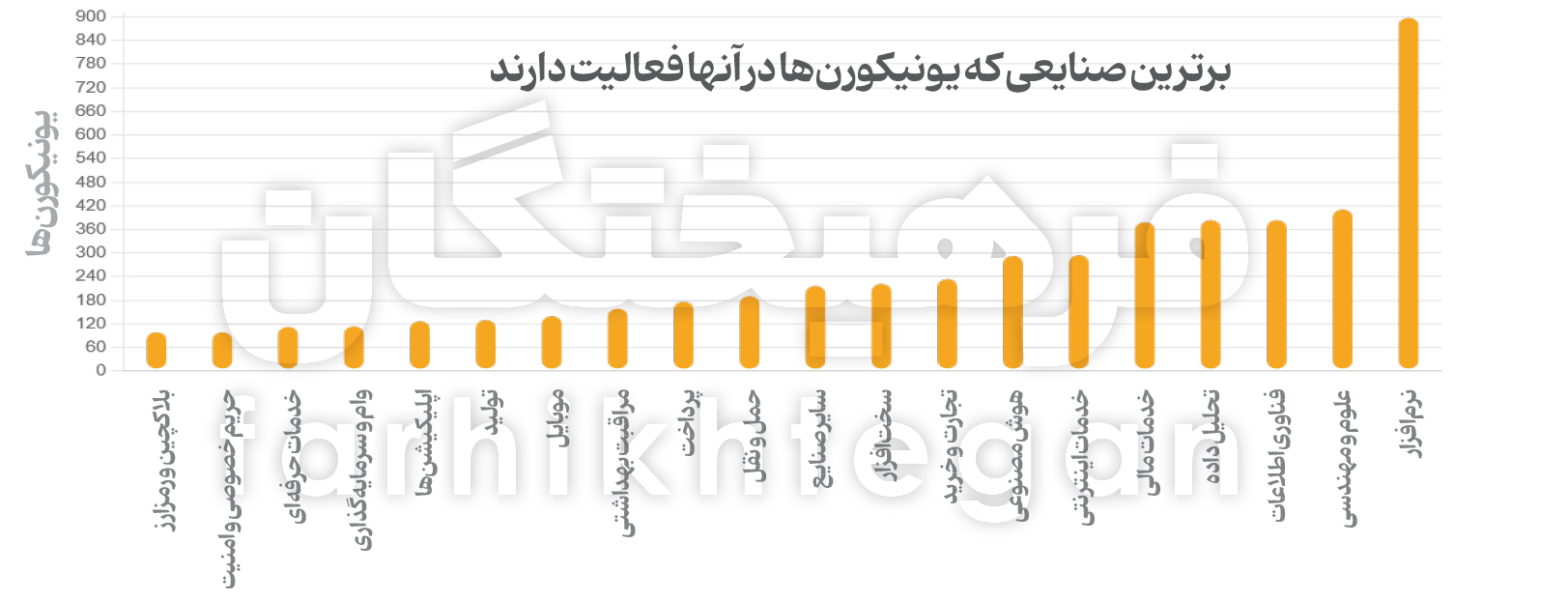 بیشترین یونیکورنها در صنعت نرمافزار فعالیت میکنند