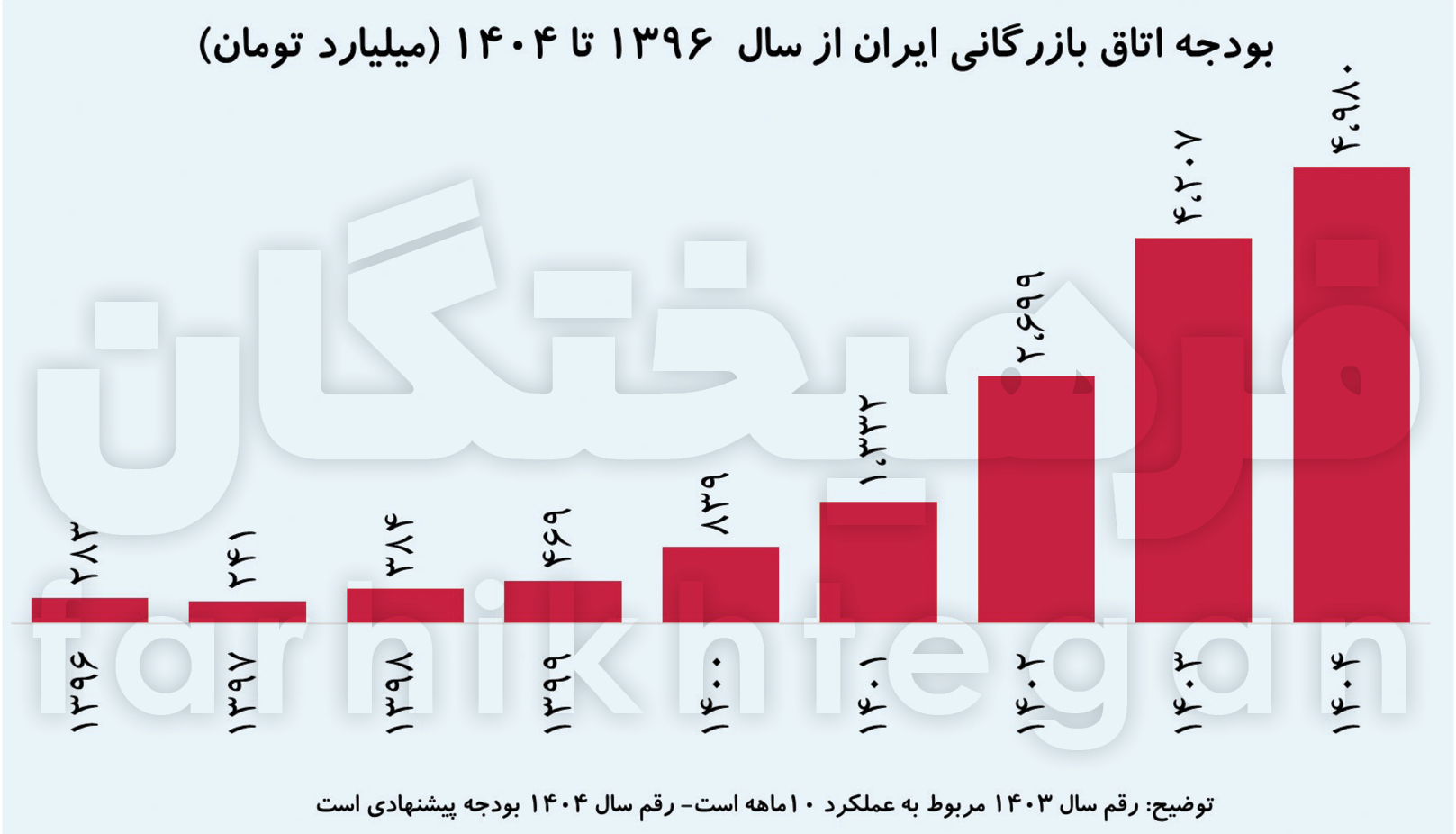 بررسیهای «فرهیختگان» از گزارشهای بودجه سالانه این نهاد نشان میدهد رقم هزینهکرد اتاق بازرگانی ایران از 283 میلیارد تومان در سال 1396 به 4 هزار و 980 میلیارد تومان در سال 1404 رسیده است. لازم به ذکر است در سال 1403 بودجه مصوب اتاق درحالی حدود 3300 میلیارد تومان بوده که تا 10ماهه عملکرد بودجه بیش از 4200 میلیارد تومان بوده است.