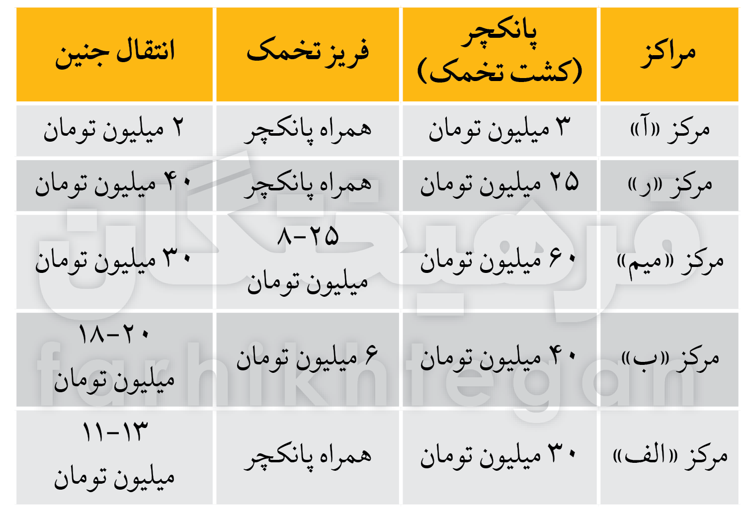 این تازه مربوط به بیمارستانهای دولتی است. در مراکز خصوصی و نامدار، رقمها بسیار متفاوت است. برای نمونه، مرکز ناباروری «ر» که از پیشرفتهترین مراکز در کشور محسوب میشود برای عمل پانکچر و فریز تخمک، رقمی حدود ۲۵ میلیون تومان مطالبه میکند و برای انتقال جنین نیز تا ۴۰ میلیون تومان هزینه از زوجها دریافت میشود. در مرکز «میم»، این رقمها سرسامآورتر است؛ پانکچر و فریز تخمک بین ۶۸ تا ۸۵ میلیون تومان و انتقال جنین حدود ۳۰ میلیون تومان است که بدون آزمایشهای مورد نیاز بیش از 110 میلیون تومان میشود. «ب» نیز برای همان مراحل اصلی درمان بین ۴۶ تا ۶۶ میلیون تومان دریافت میکند. حتی مرکز «الف» که بهظاهر هزینههایش کمتر از سایر مراکز خصوصی است، برای پانکچر و فریز حدود ۳۰ میلیون و برای انتقال جنین نزدیک به ۱۳ میلیون تومان مطالبه میکند.