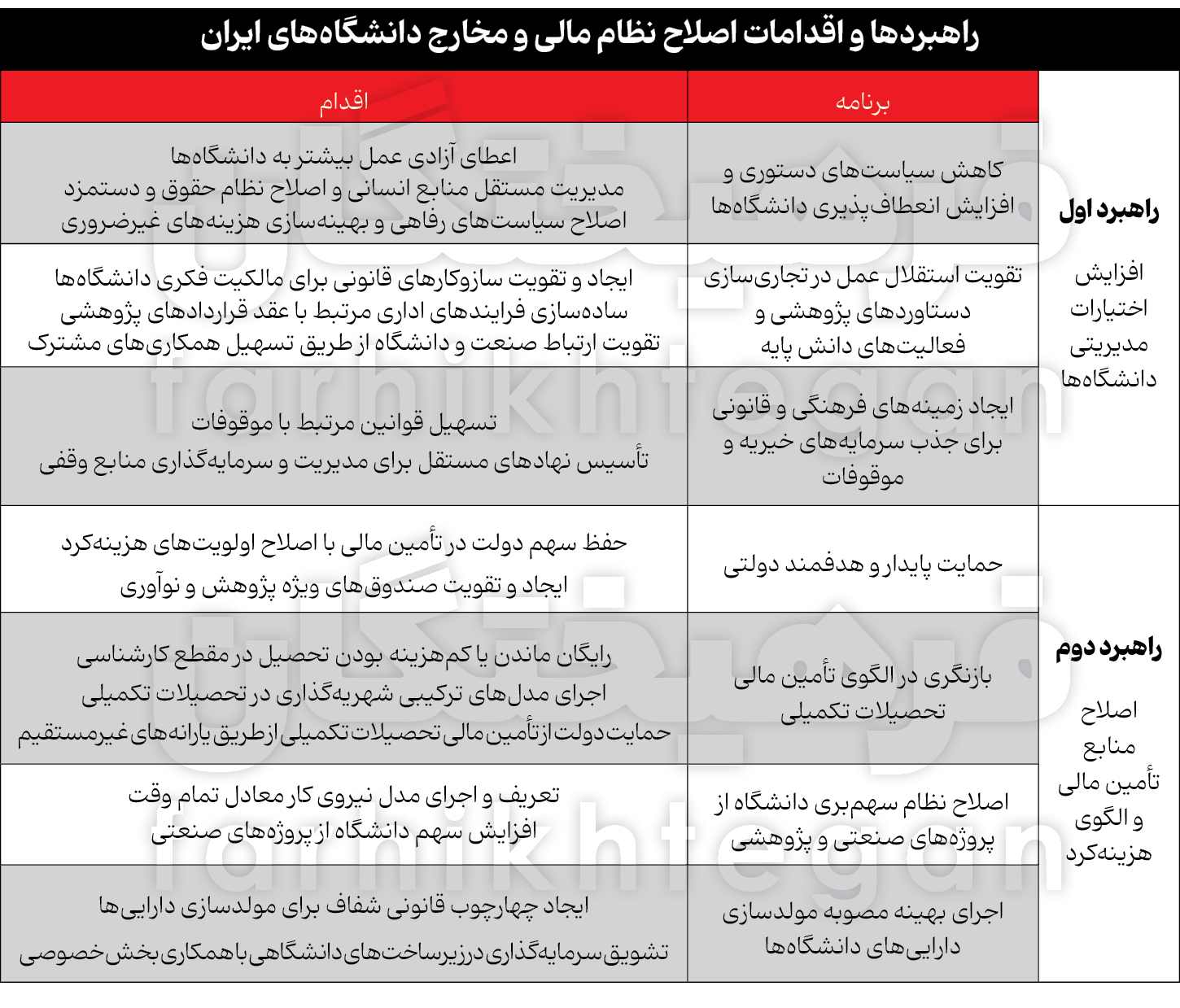 2 راهبرد و 7 پیشنهاد برای اصلاح نظام تأمین مالی و مخارج دانشگاه