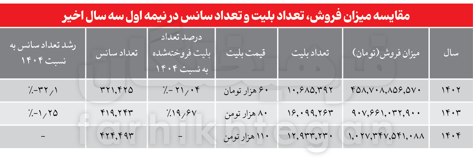 مریم فضائلی - محمدحسین سلطانی، گروه فرهنگ: سینمای ایران در 6 ماه نخست سال 1404، علیرغم جنگ و تعطیلیهای مکرر فروشی کمی بیش از یک همت داشته و مخاطبانش به 12 میلیون و 933 هزار نفر میرسد. 6 ماه اخیر بهزعم بسیاری از رسانهها روزهای اوج و بازگشت سینمای اجتماعی به چرخه پرفروشها بود. با این حال، میزان فروش بیشتر امسال نسبت به سال گذشته تنها عدد قابل بررسی در این آمار و ارقام نیست؛ شش ماه نخست 1404 به نسبت 1403، فروش سینما -از نظر تعداد بلیت- حدود 3 میلیون و 100 هزار نفر کاهش داشته است، رقمی که حدود یک میلیون و دویست هزار نفر از تعداد مخاطبان پرفروشترین فیلم اجتماعی چند سال اخیر (پیرپسر) بیشتر است. از طرفی سینمای 1404 در نسبت با 1402 حدود 2.2 میلیون بلیت بیشتری فروخته که این نشان از رونق نسبی سینماست. این تحلیل و آمار و ارقام تنها گوشهای از دادههایی است که میتوان با مقایسه میان شش ماه نخست امسال و دو سال گذشته به دست آورد. آمار و ارقامی که خبر از نزول و صعودهای بسیاری در سینمای سه سال اخیر است.
