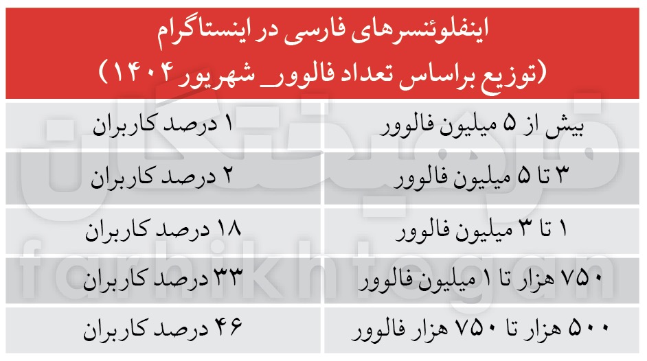این روزها اینستاگرام همچنان جزء اصلی و مهمترین بسترهای تعاملی، تبلیغاتی و اقتصادی در بین اینفلوئنسرهای فارسی زبان به حساب میآید. آمارها و اعدادی که مرکز پژوهشی بتا در شهریور 1404 منتشر کرده است نشان میدهد ساختار توزیع فالوورها در اینستاگرام فارسی زبان به طرز معناداری هرمی است. در رأس این هرم تنها یک درصد از کاربران قرار دارند که بیش از پنج میلیون نفر دنبالکننده دارند و به عنوان ابراینفلوئنسر شناخته میشوند. در لایهها و ردههای پایینتر نیز بخش گستردهای از اینفلوئنسرها با تعداد فالوور کمتر اما با نرخ تعاملی بالاتری قرار دارند. این گروه که به نسبت ابراینفلوئنسرها مخاطب کمتری دارند اما برای برند و کسب و کارهای اینترنتی بسیار جذابتر هستند؛ چراکه هزینه همکاری با آنها منطقیتر از ابراینفلوئنسرها است.