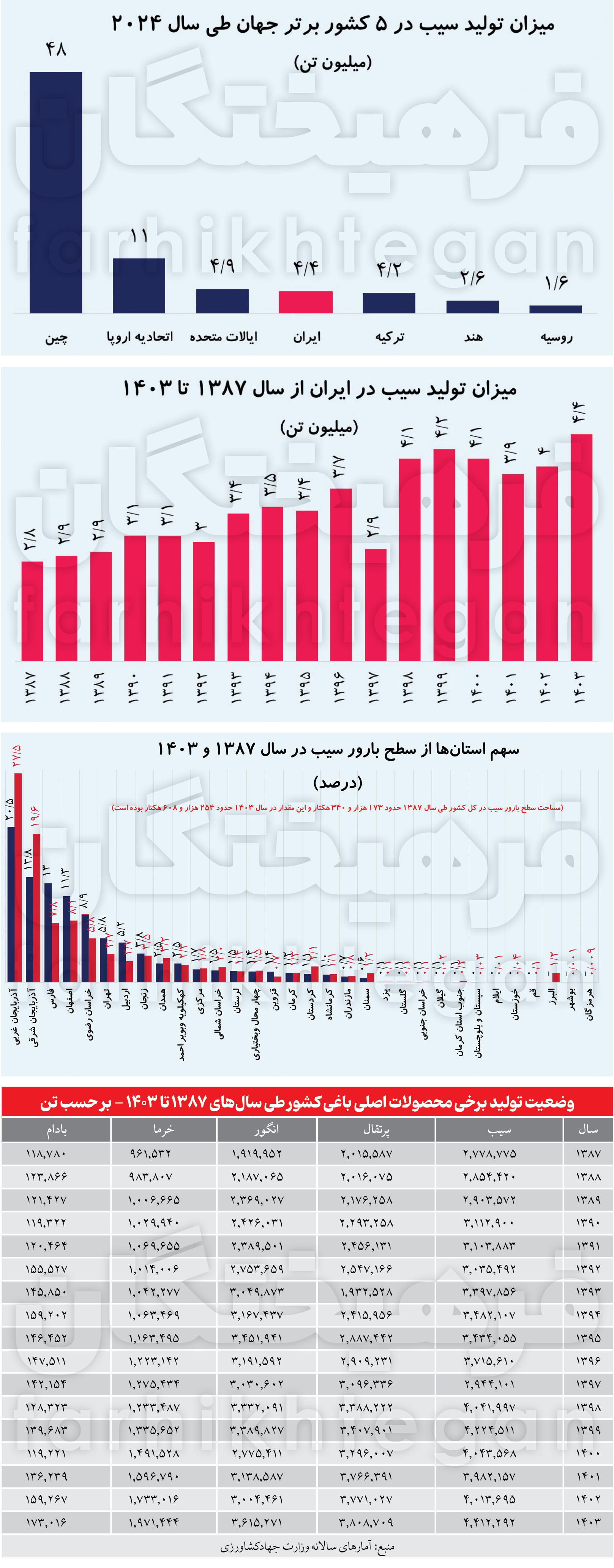 ایران، چهارمین تولیدکنندۀ بزرگ سیب در جهان