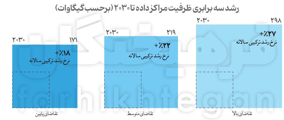تحلیلها حکایت از آن دارد که تقاضای جهانی برای ظرفیت مراکز داده میتواند تا سال 2030 بیش از سه برابر شده و با نرخ رشد مرکب سالانه حدود 22 درصدی همراه باشد. در آمریکا، تقاضای مراکز داده میتواند در همین دوره سالانه 20 تا 25 درصدی افزایش یابد. رشد هوش مصنوعی و محاسبات با کارایی بالا، یکی از محرکهای تقاضای بالا برای تأسیس مراکز داده است. تکامل سریع فناوری هوش مصنوعی منجر به توسعه مدلهای زبانی بزرگ با قابلیتهای استدلال پیشرفته، مانند مدل GPT-4 OpenAI شده است به طوری که تقاضای برای مدلهای هوش مصنوعی مولد تا سال 2030 حدود 40 درصد خواهد شد. علاوهبراین، رشد مداوم مهاجرت ابری و نرمافزاری به عنوان یک سرویس، از دیگر عوامل افزایش تقاضا برای مراکز داده محسوب میشود. تقاضای مراکز داده در آمریکا از سوی رایانش ابری و سایر محرکهای غیرمرتبط با هوش مصنوعی نسل جدید، تا سال 2023 با نرخ رشد مرکب سالانه 16 درصد رشد خواهد کرد. همچنین، افزایش دیجیتالی شدن خدمات عمومی نیز از دیگر عوامل رشد تقاضاست که افزایش خدمات دیجیتالی در حوزههایی چون مراقبتهای بهداشتی، اداره وسایل نقلیه موتوری و شناسایی دیجیتال برای ساکنان رشد یافته است. همچنین روندهای فناورانه در حال شتاب گرفتن هستند. روندهایی چون اینترنت اشیا و راهاندازی شبکههای 5G، نیازهای فناوری بیشتری مانند محاسبات لبهای را ایجاد خواهند کرد. از سوی دیگر، افزایش تقاضا، چالشهای ظرفیتی را نیز برای بازارهای اولیه ایجاد میکند که در حال حاضر از مراکز داده اشباع شدهاند.