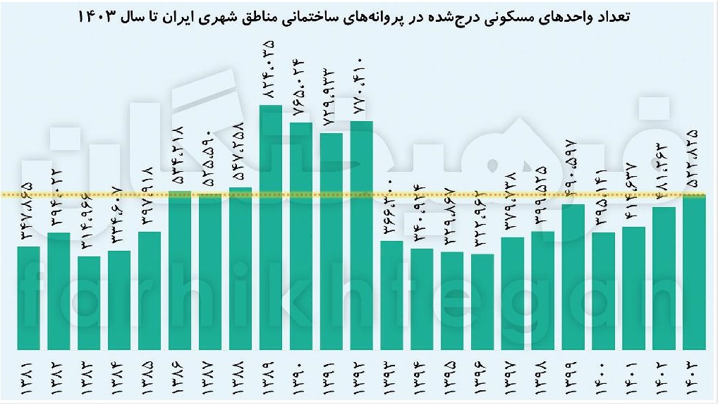 در سال 1400 تعداد واحدهای مسکونی درجشده در پروانههای ساختمانی به 395 هزار واحد، در سال 1401 به حدود 415 هزار واحد و در سال 1402 این عدد به 481 هزار واحد رسید. در نهایت و مبنی بر آخرین دادههای رسمی منتشرشده از سوی مرکز آمار، درحالیکه میزان ساخت و ساز در سال 1402 بالغ بر 481 هزار واحد مسکونی بوده، تعداد ساخت و ساز در سال 1403 با افزایش 8.6 درصدی از مرز 500 هزار واحد گذشته و به 522 هزار و 825 واحد مسکونی رسیده است. عددی که بالاترین حجم ساخت و ساز از سال 92 تا سال 1403 و یک رکوردشکنی در این حوزه محسوب میشود. آنگونه که دادهها نشان میدهد به نظر میرسد دولت درصدد پیشبرد اقداماتی است که وضعیت ساخت و ساز را در کشور ازجمله ساخت نهضت ملی مسکن تسریع پیدا کند.