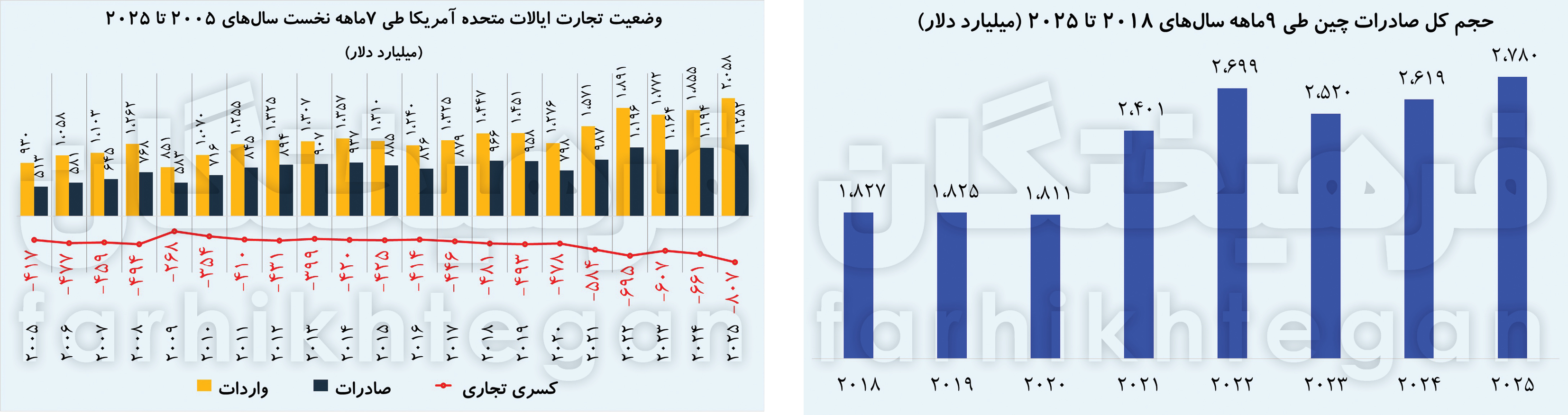 باوجوداینکه آمریکا سهم قابلتوجهی در خرید کالاهای چینی دارد و سالانه بیش از 500 میلیارد دلار کالا از چین میخرد، اما جنگ تجاری اخیر این کشور علیه چین نتوانسته روند صادرات چینیها را متوقف کند، بهطوریکه در 9 ماهه نخست سال 2025 حجم تجارت چین به دو هزار و 780 میلیارد دلار رسیده که 6 درصد بیشتر از مدت مشابه سال گذشته بوده و یک رکورد تاریخی برای چینیها محسوب میشود. آمارها نشان میدهد بهرغم کاهش صادرات چین به آمریکا صادرات چین به کشورهای اروپایی و آسیایی به طور قابلتوجهی در سال جاری رشد داشته است.