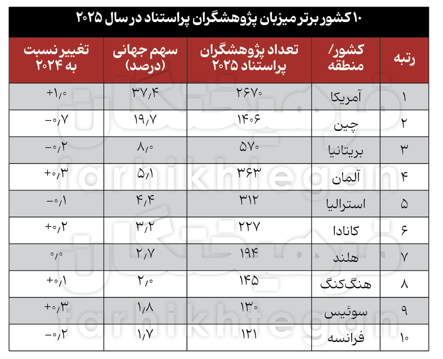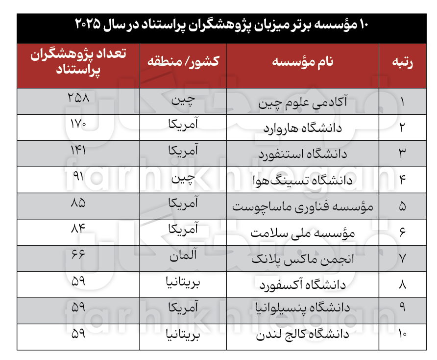 ایرانیهای فهرست پراستنادها احتمالا بیشتر از سه نفری هستند که ذیل نام ایران در این جدول دیده میشوند؛ اما در هر صورت در جدول 2025 فقط نام سه نفر عنوان شده است.