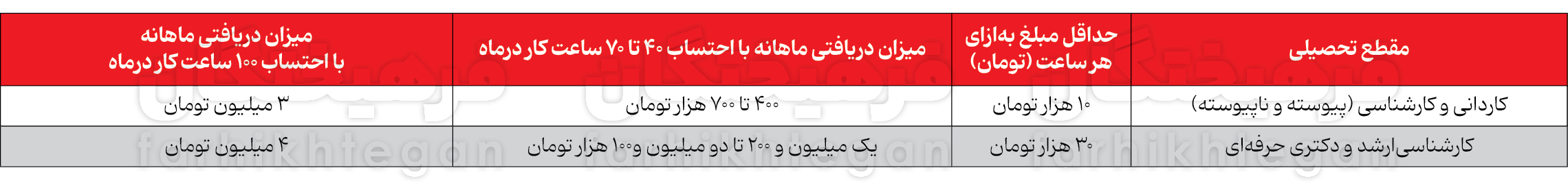 در سالهای اخیر، کار دانشجویی بهعنوان یکی از راههای حمایت مالی و مهارتی از دانشجویان در دانشگاههای دولتی کشور موردتوجه قرار گرفته است. بررسی میزان حقالزحمه پرداختی در چند دانشگاه معتبر نشان میدهد که این حمایتها با درنظرگرفتن مقطع تحصیلی، وضعیت تأهل و حتی معدل دانشجو، بهصورت هدفمند طراحی شدند. در دانشگاه علامه طباطبایی، برای دانشجویان کارشناسی، مبلغ پرداختی بهازای هر ساعت کار برای افراد مجرد ۲۹ هزار تومان و برای دانشجویان ممتاز با معدل بالای ۱۷، ۳۲ هزار تومان در نظر گرفته شده است. این مبلغ برای دانشجویان متأهل به ۴۳ هزار تومان و در صورت ممتاز بودن به ۴۷ هزار تومان میرسد. در مقطع کارشناسیارشد، دانشجویان مجرد ۳۱ هزار و ۵۰۰ تومان و ممتازها ۳۵ هزار تومان دریافت میکنند، درحالیکه متأهلین این مقطع به ترتیب ۴۷ هزار و ۵۰۰ و ۵۲ هزار تومان دریافت میکنند. در مقطع دکتری نیز، دانشجویان مجرد ۳۹ هزار و ۵۰۰ تومان و ممتازها ۴۳ هزار و ۵۰۰ تومان دریافت میکنند، و این مبلغ برای متأهلین به ۵۹ هزار تومان و در صورت ممتاز بودن به ۶۵ هزار تومان میرسد.