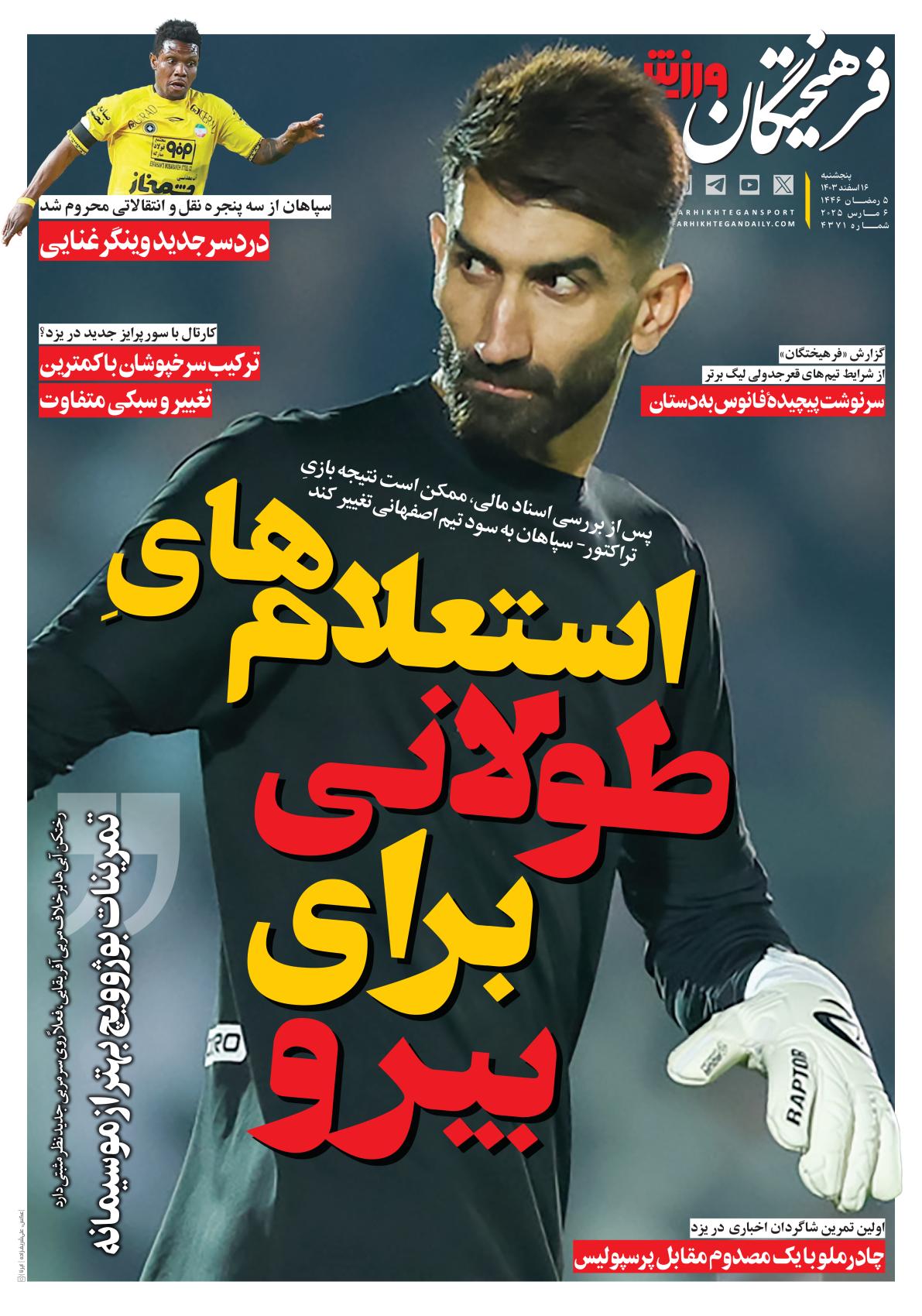 پنجشنبه ۱۶ اسفند ۱۴۰۳