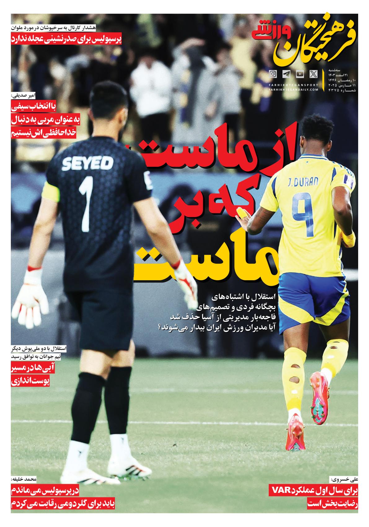 سه شنبه ۲۱ اسفند ۱۴۰۳