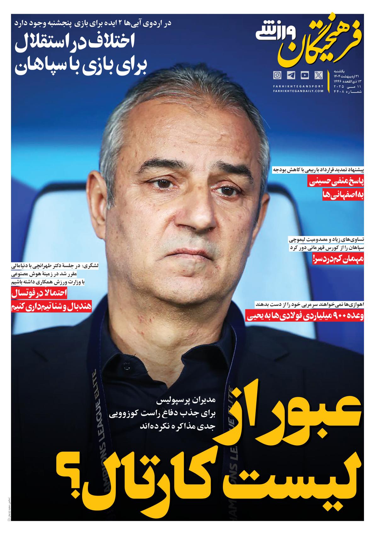 یکشنبه ۲۱ اردیبهشت ۱۴۰۴