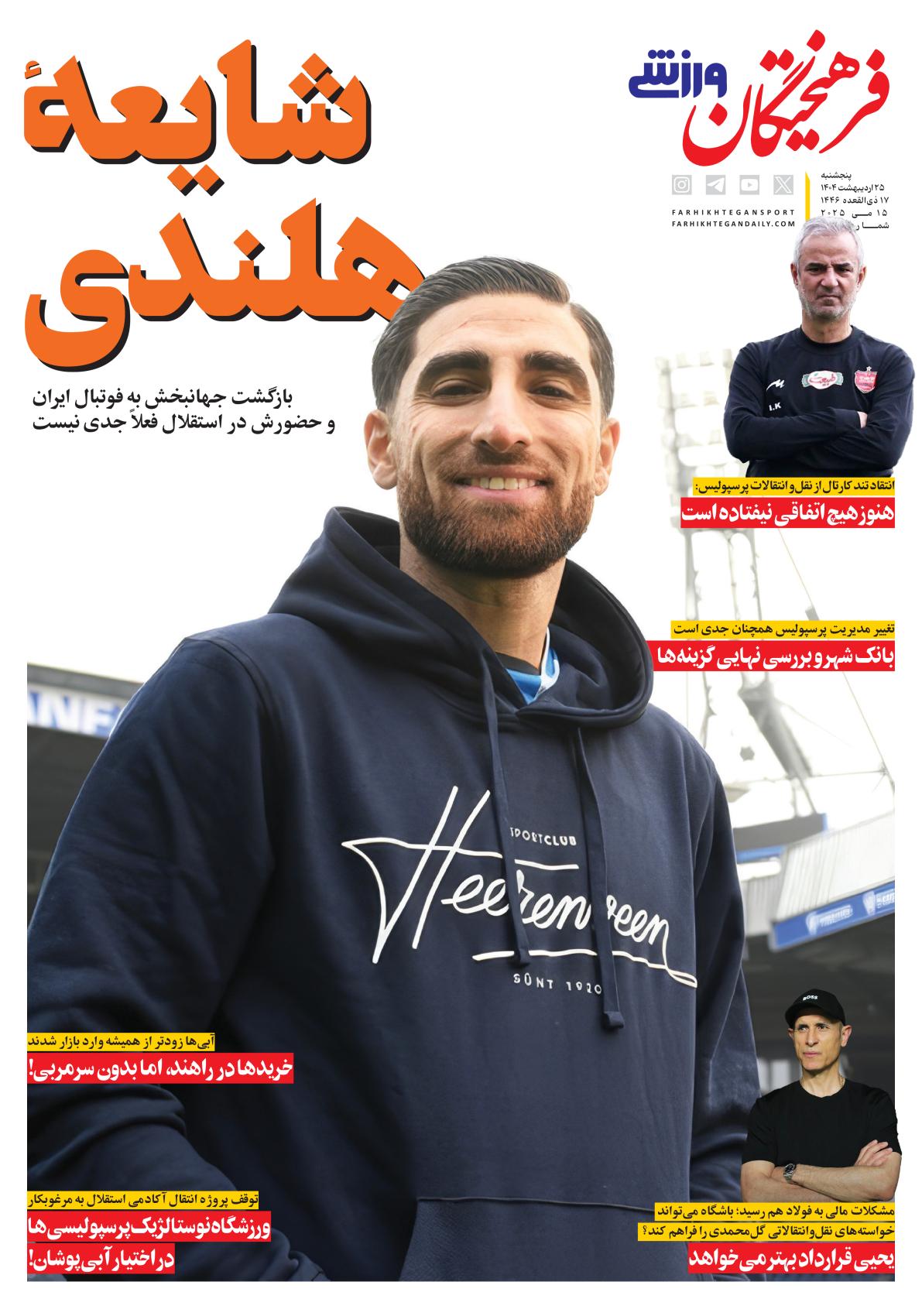 پنجشنبه ۲۵ اردیبهشت ۱۴۰۴